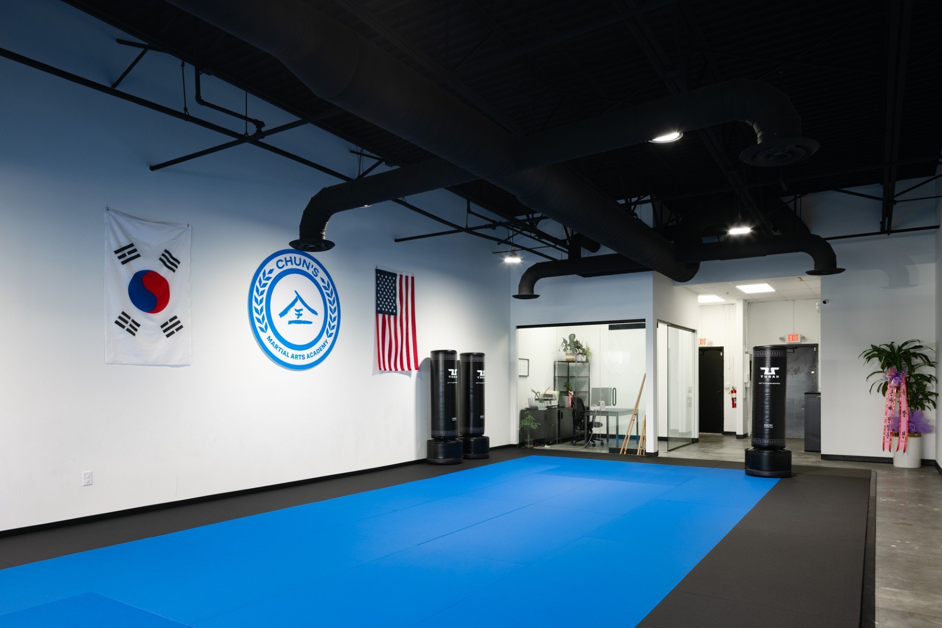 The padded training mats were supplied and installed by the tenant.